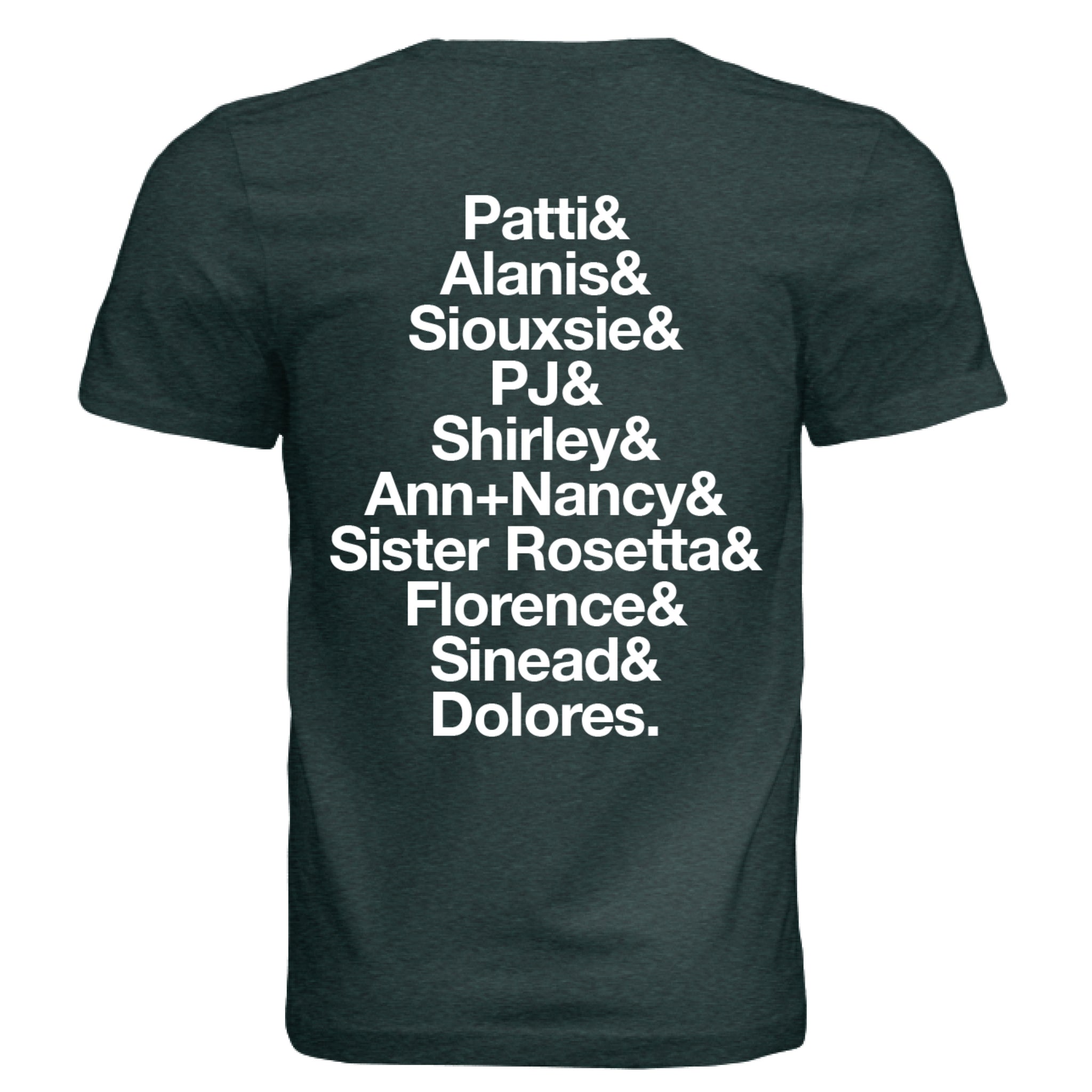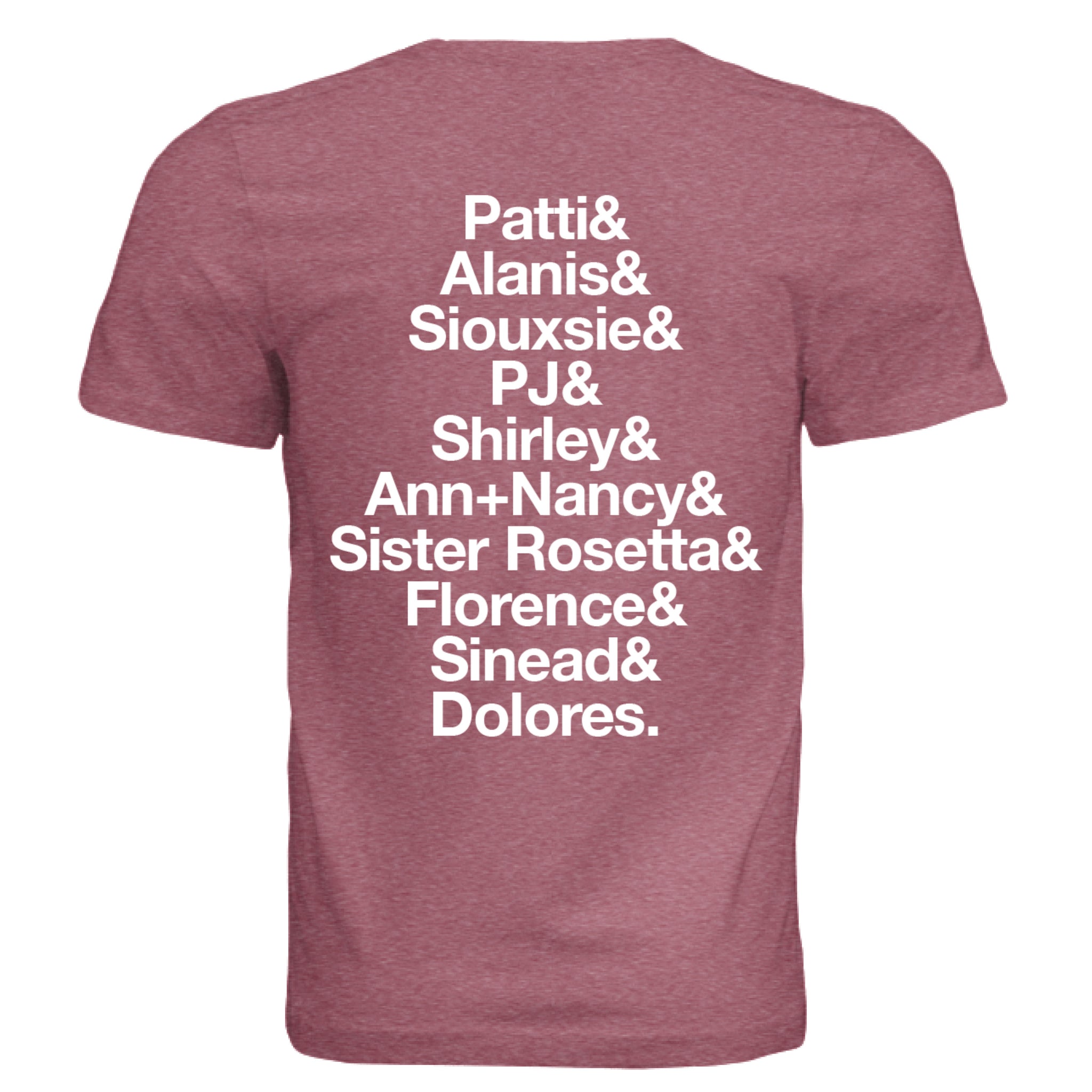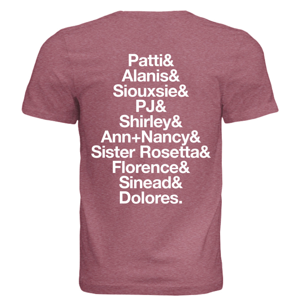Based on Gina's iconic tribute class, this Unisex Triblend Short-Sleeve T-Shirt has the name of some of the female icons in rock music!